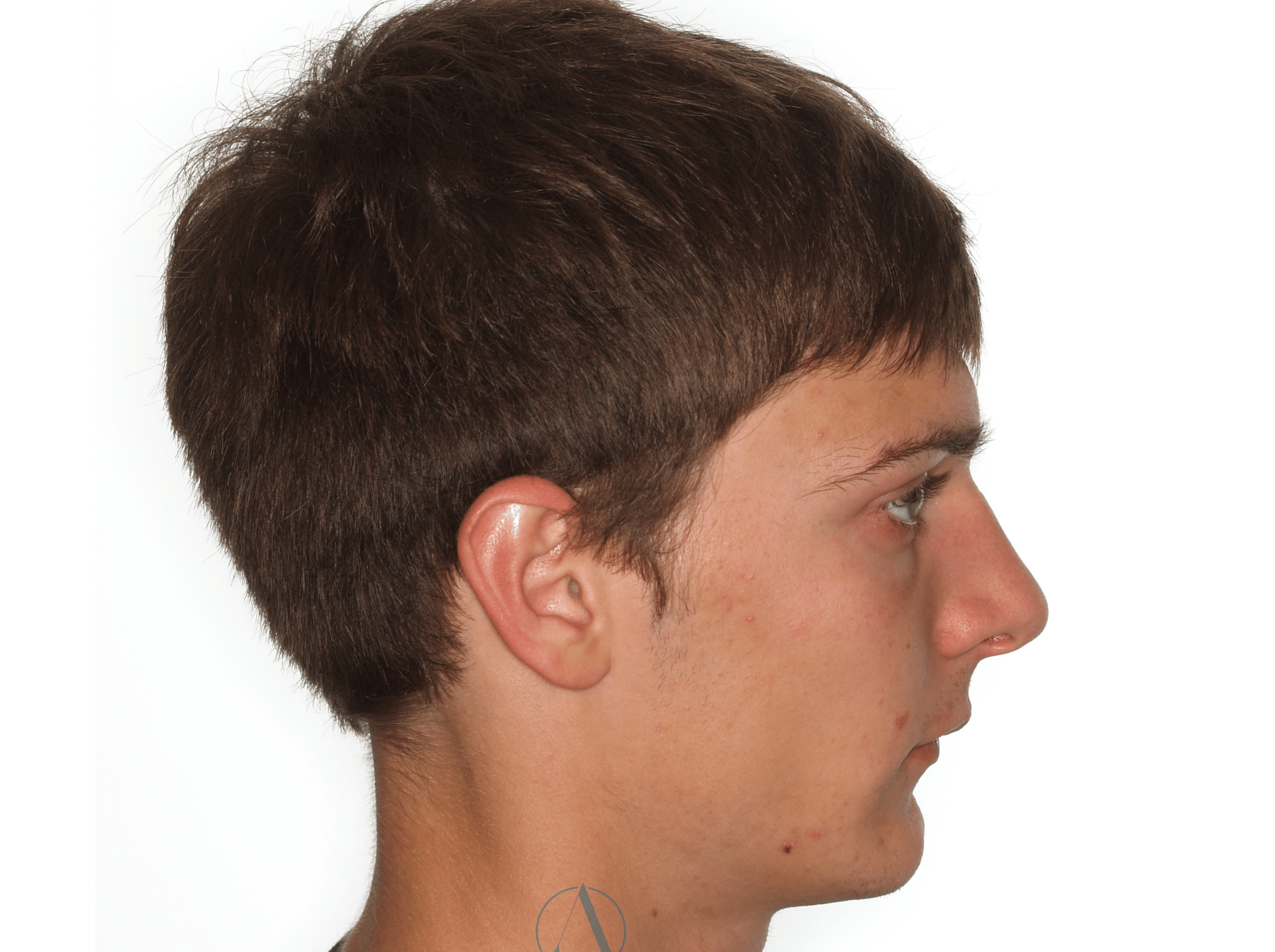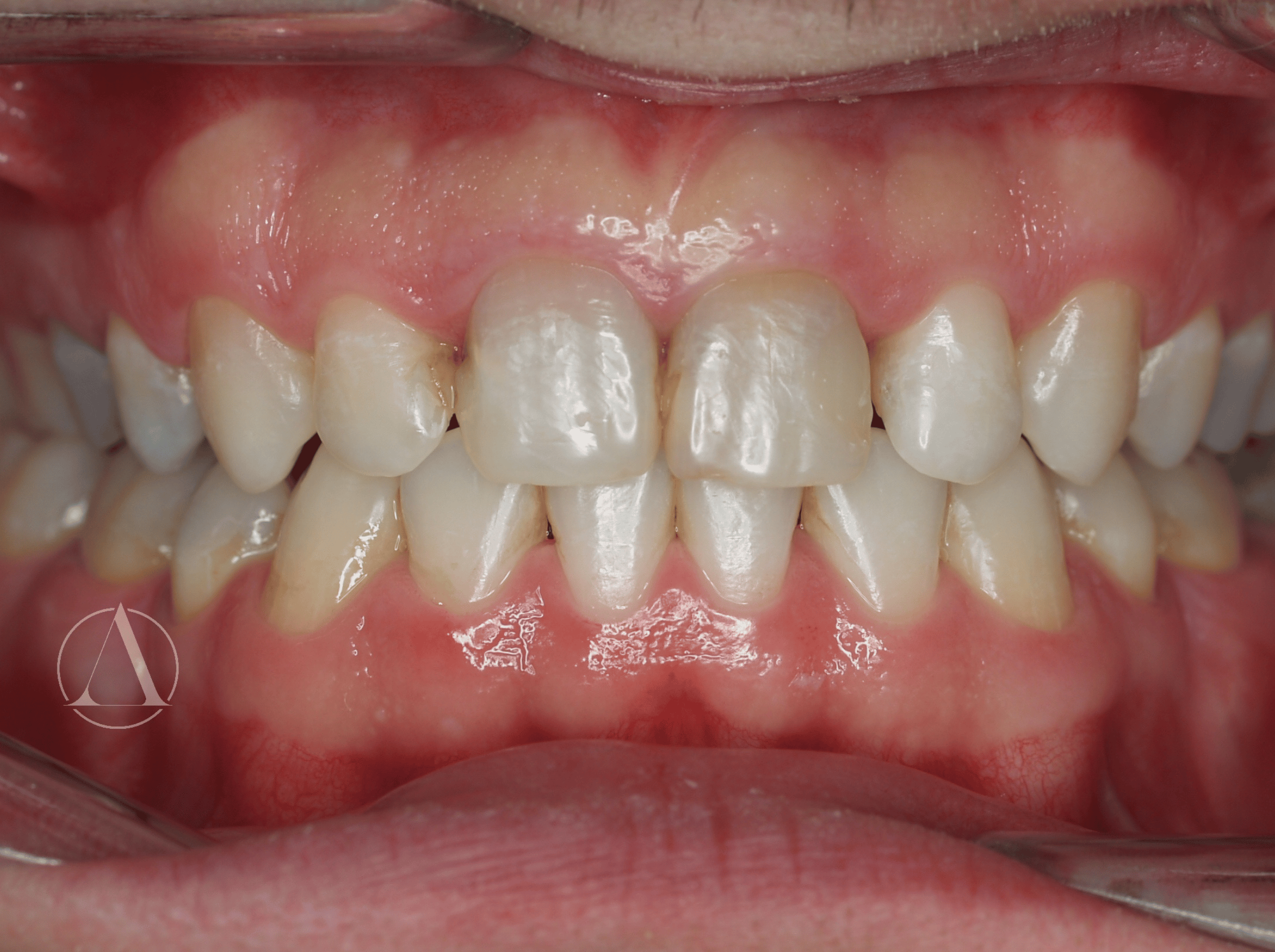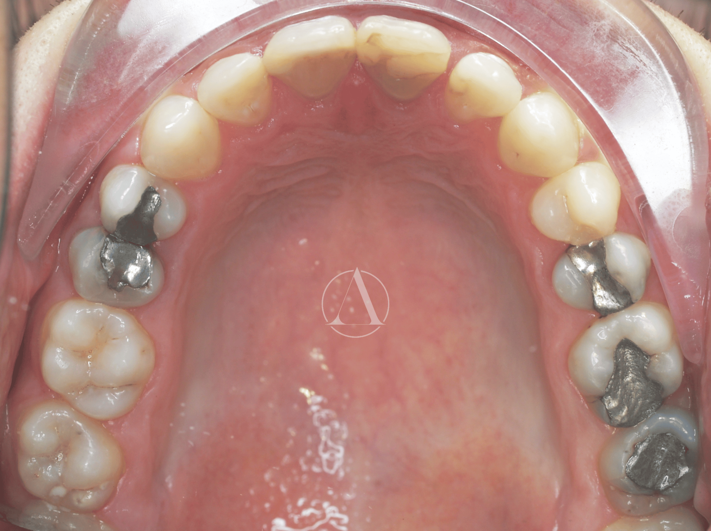 Upper teeth pushed back by lower lip to meet lower teeth (Retroclined).