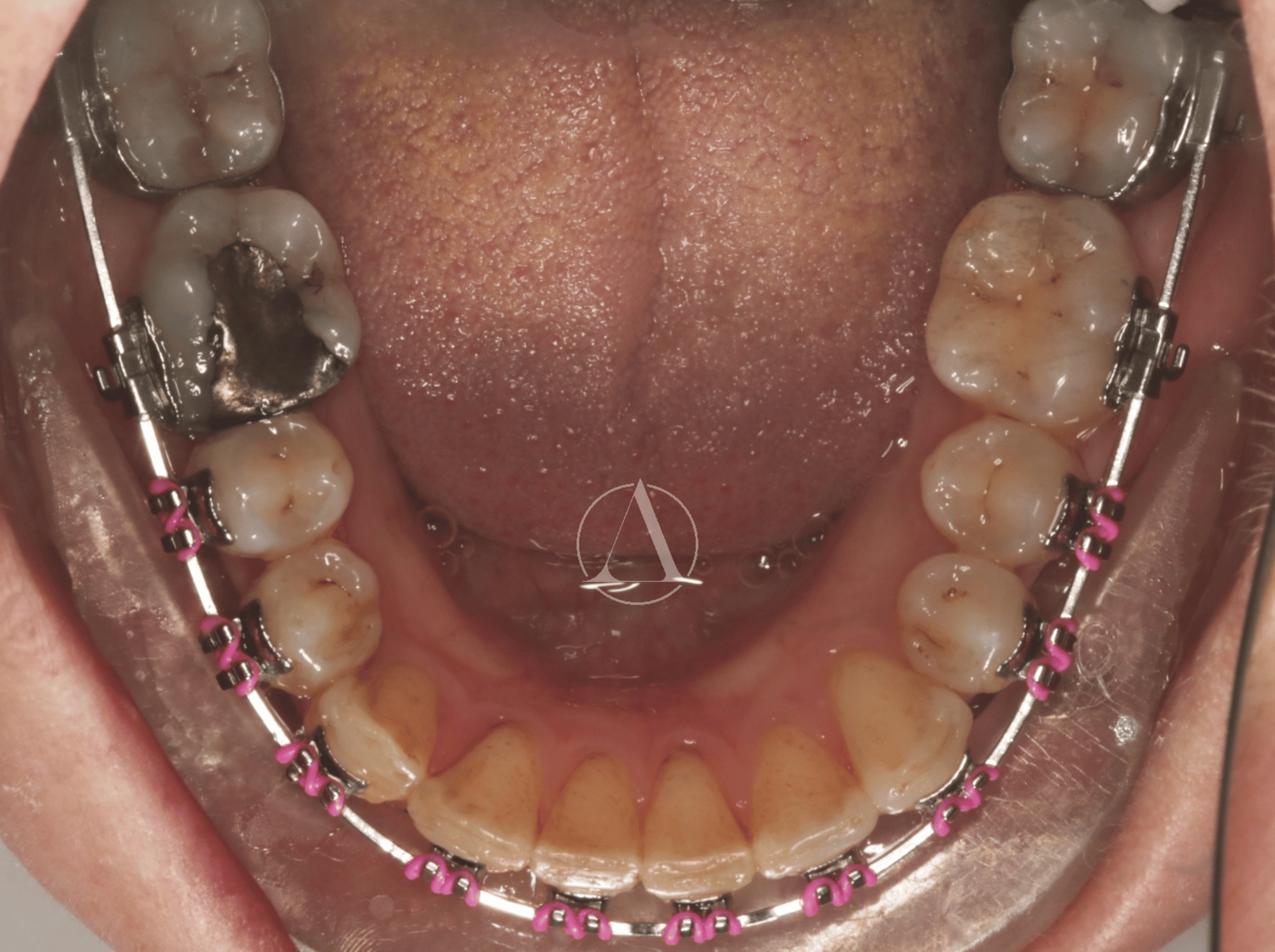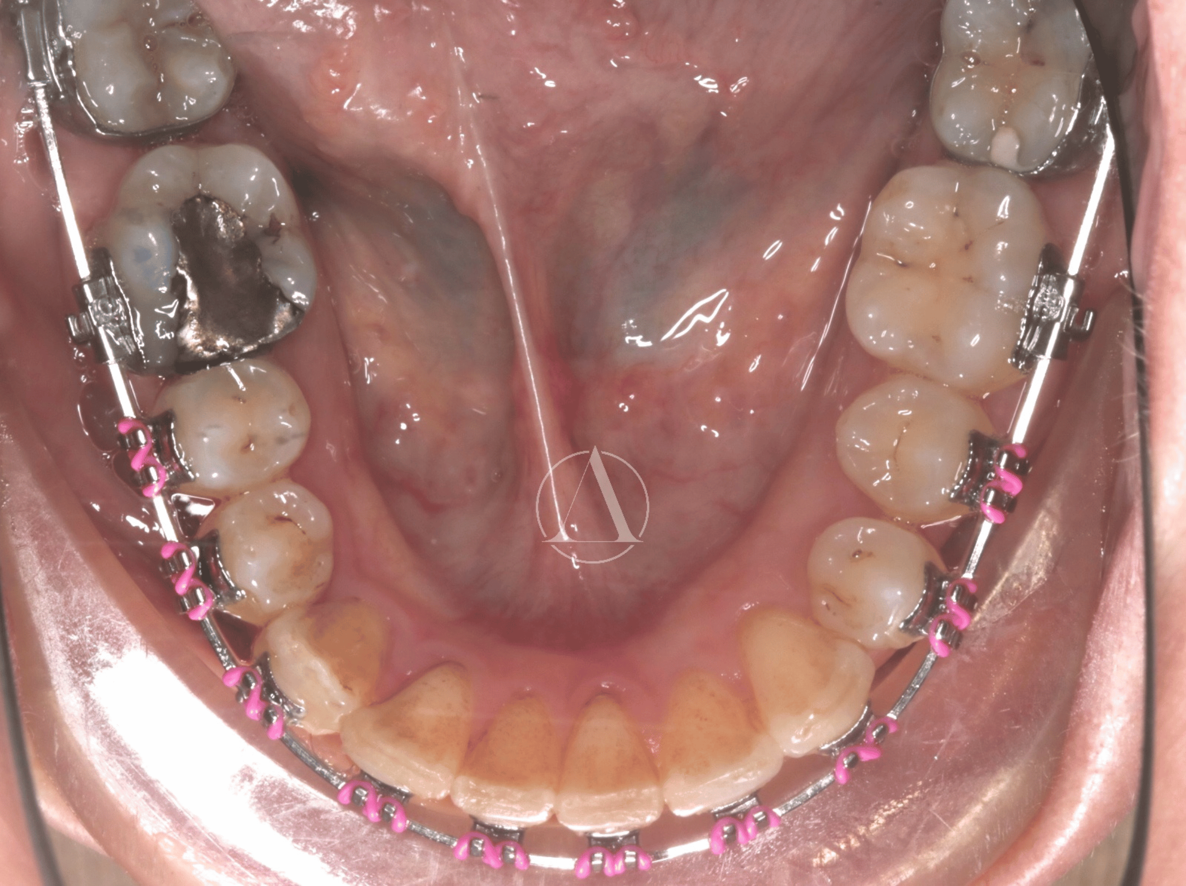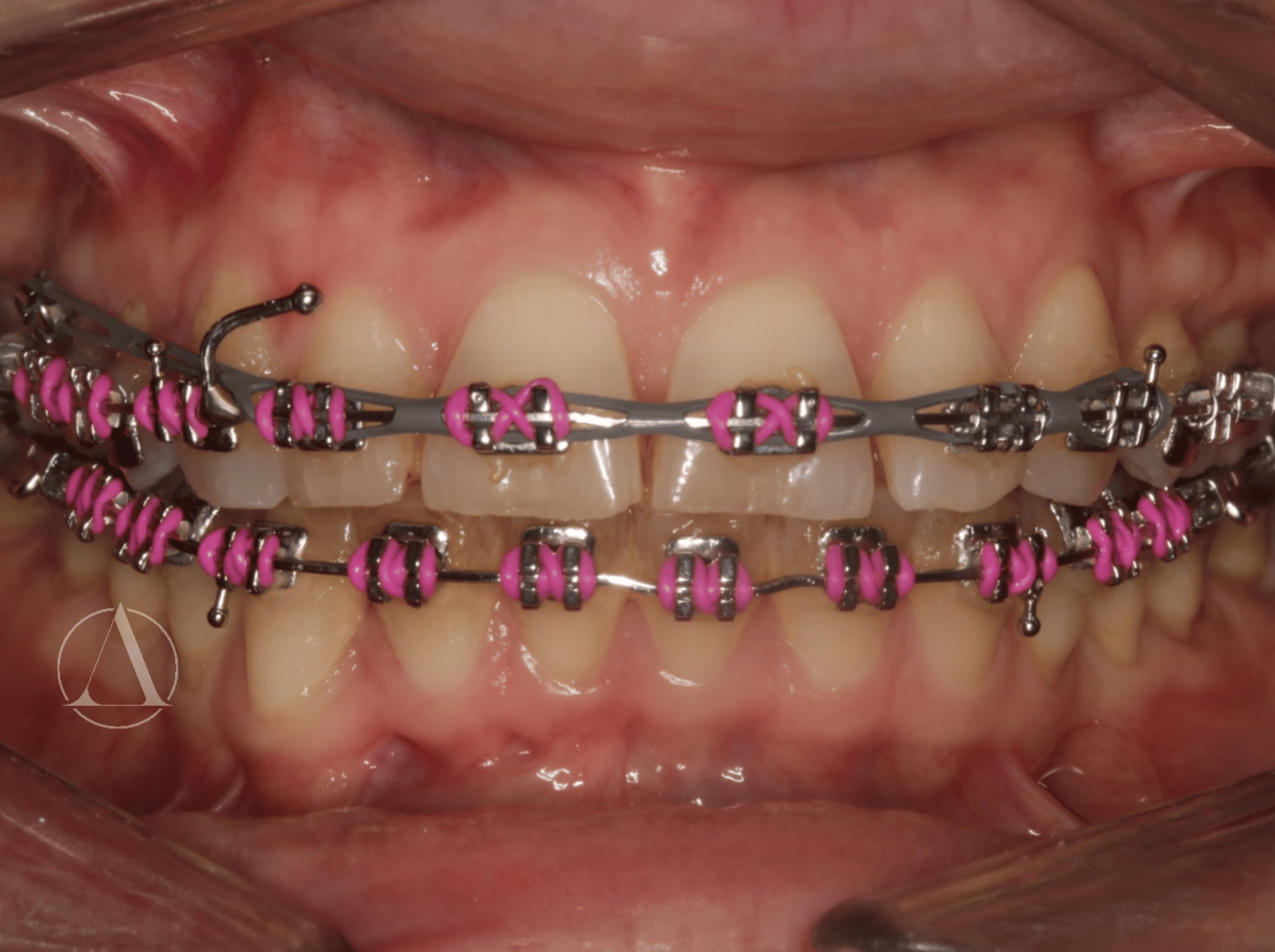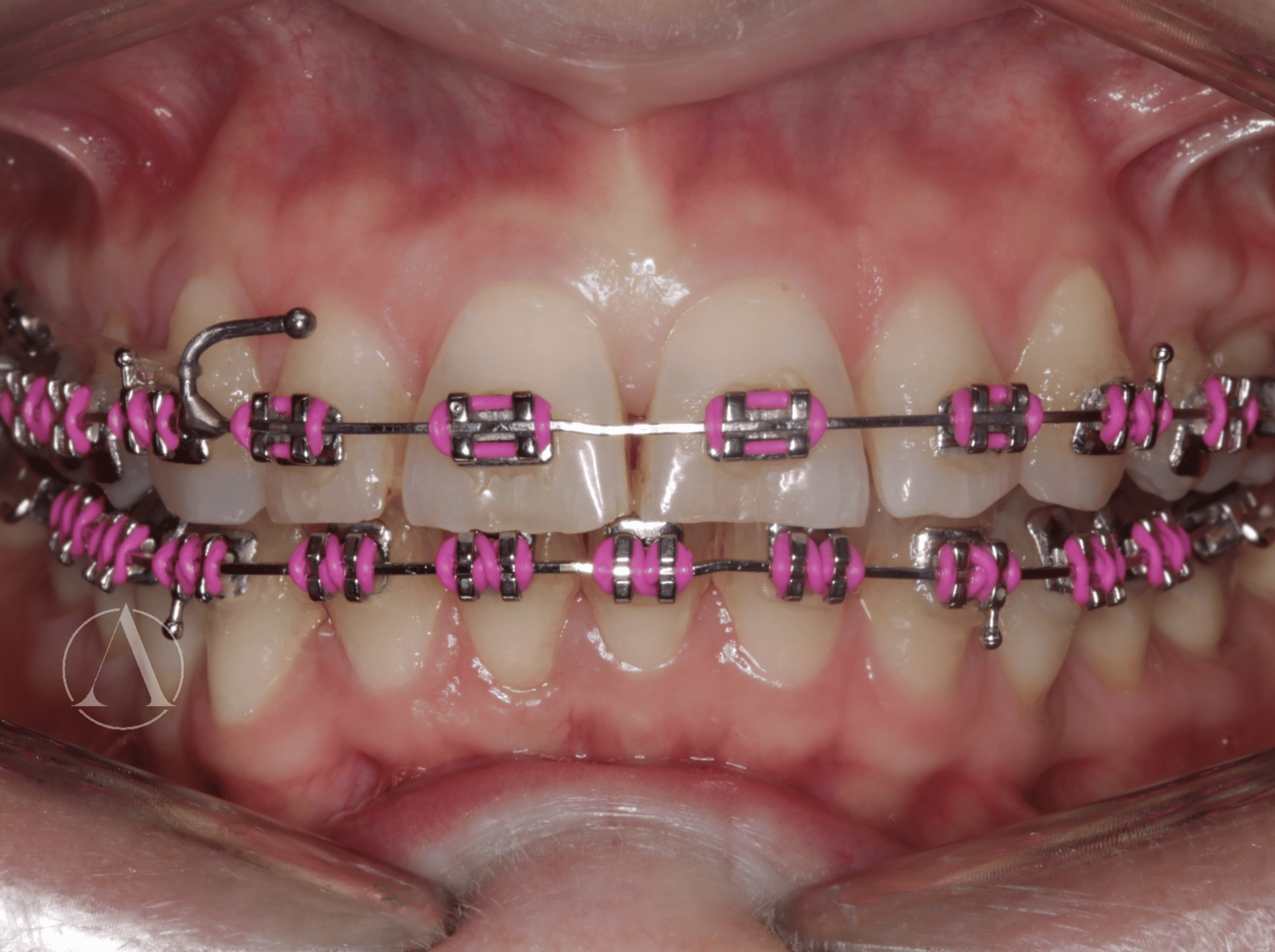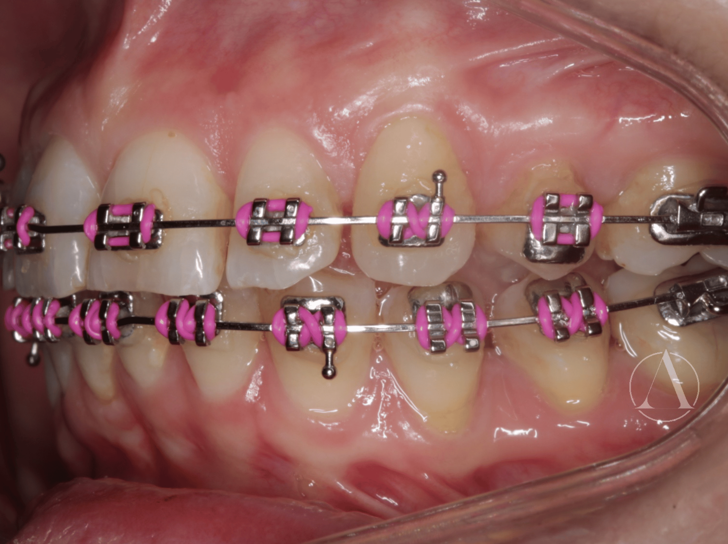 Fixed appliances to straighten teeth and correct overbite.