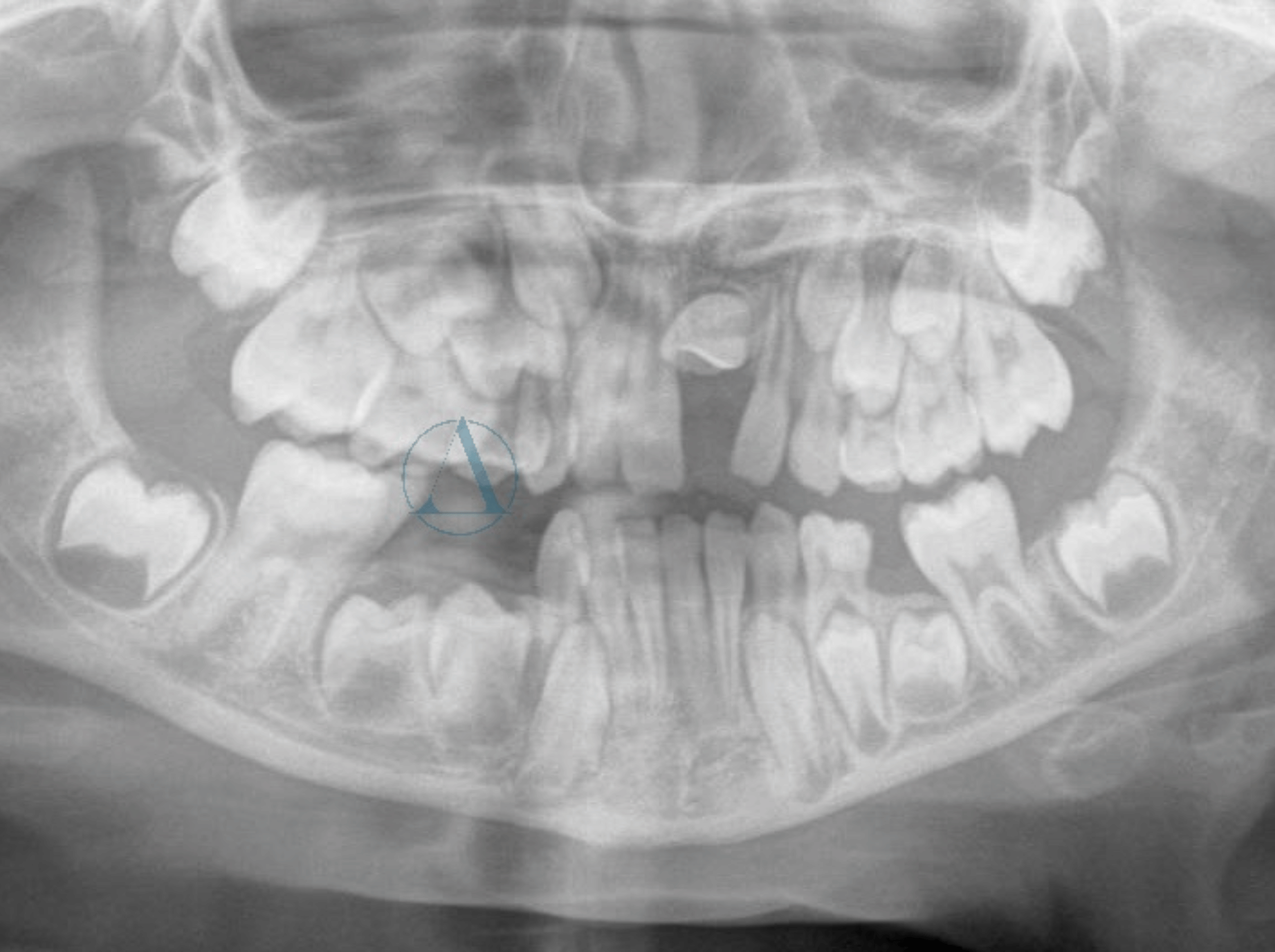 • Upper Left Central incisor (UL1) was very ectopic (poorly positioned): placed under the nose growing towards the lip.