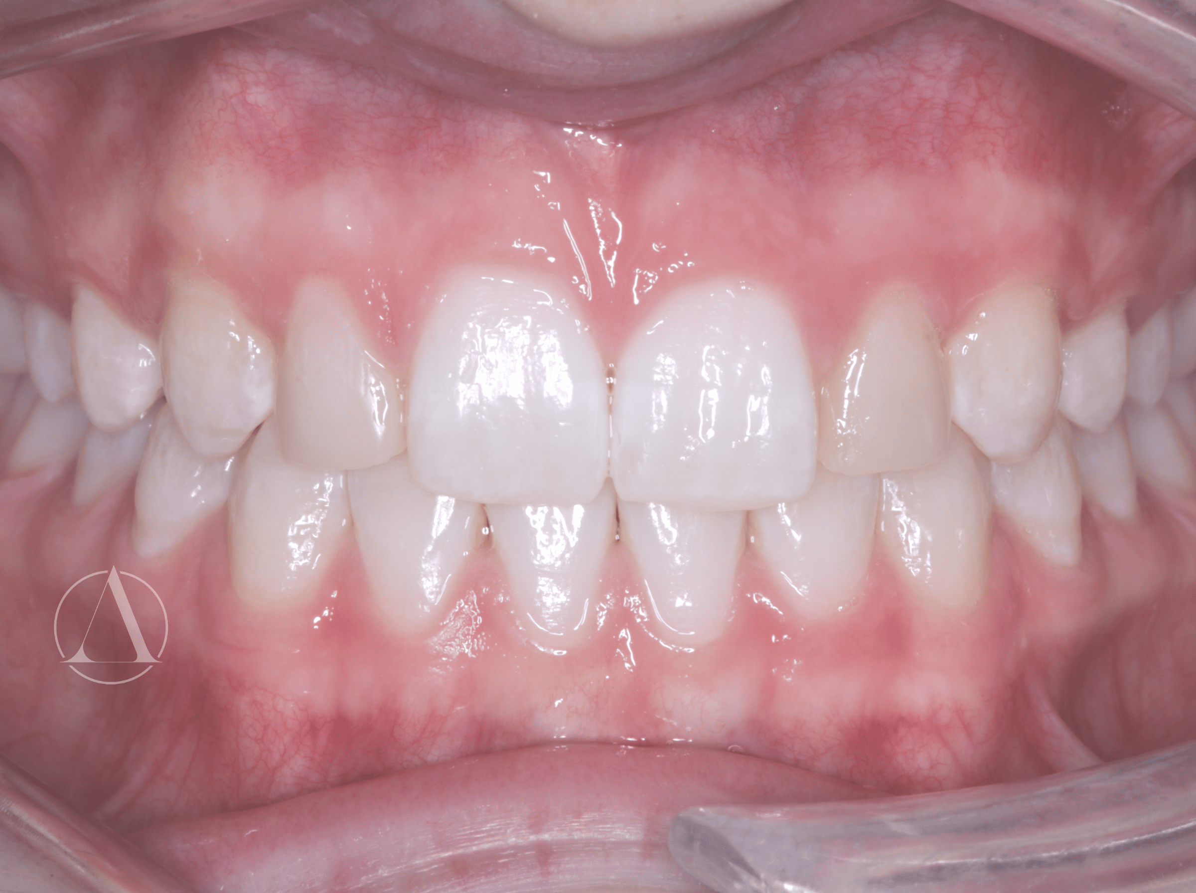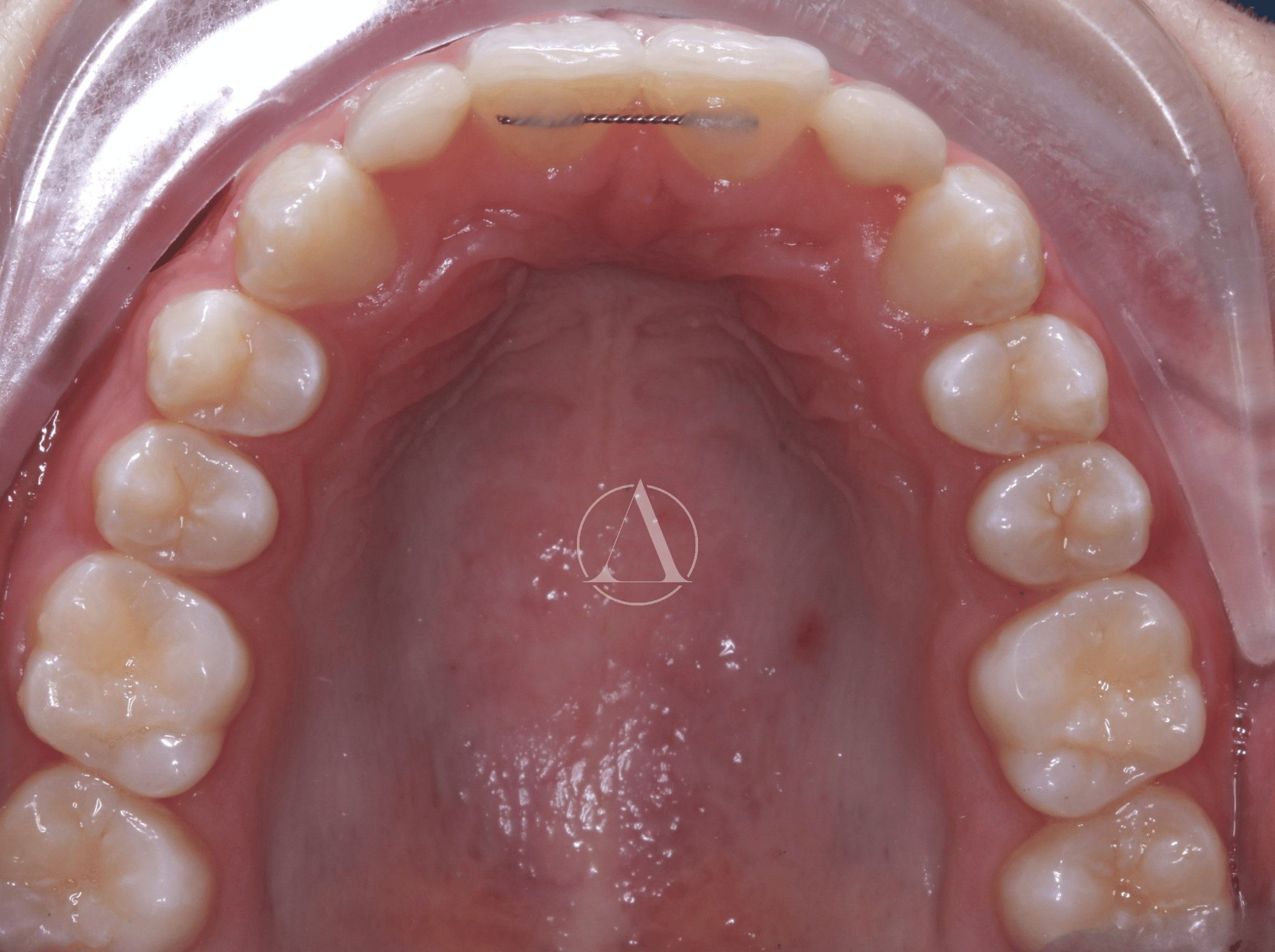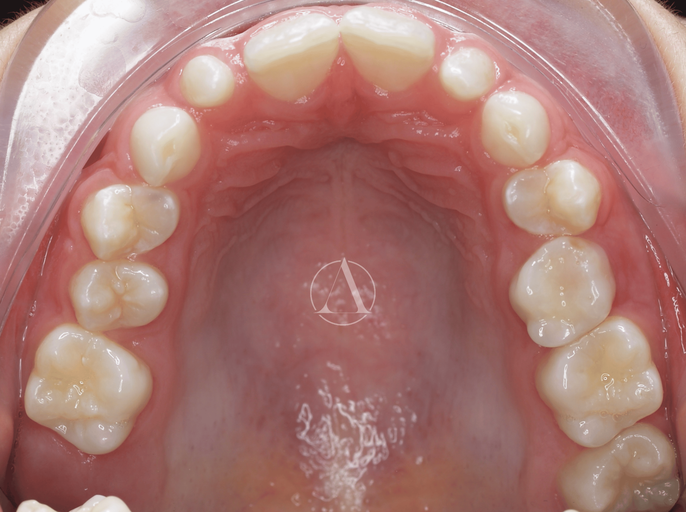 • Small upper lateral incisors were built up by the dentist to improve aesthetics.