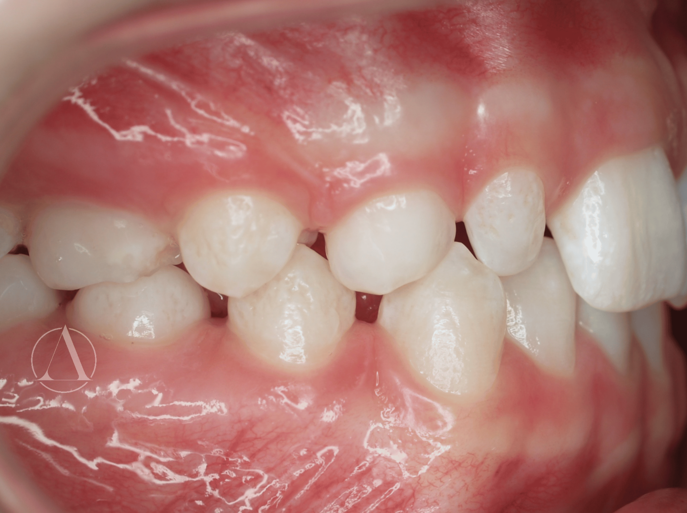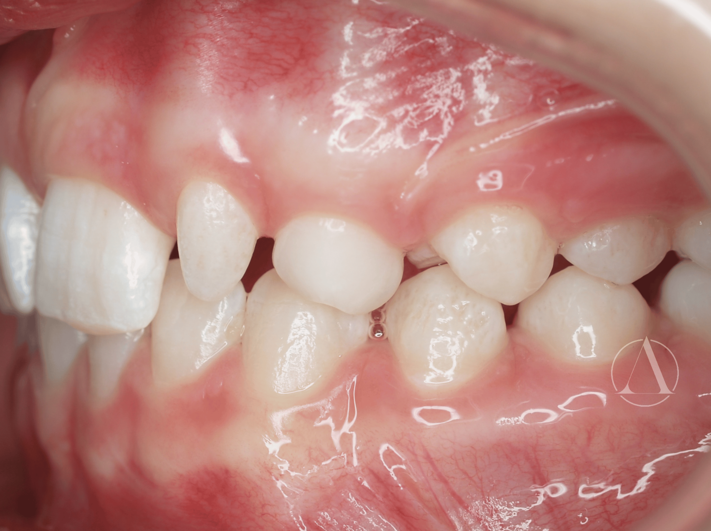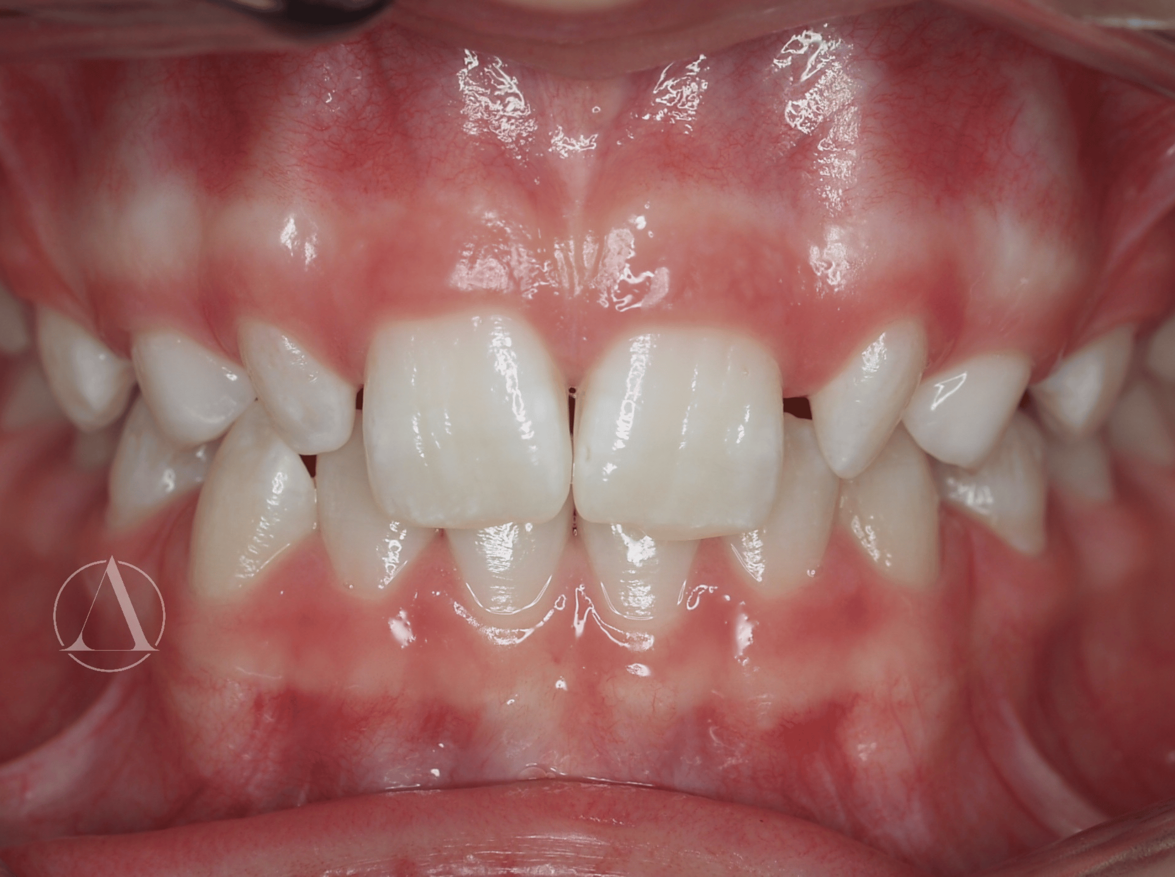 • Small upper lateral incisors were built up by the dentist to improve aesthetics.