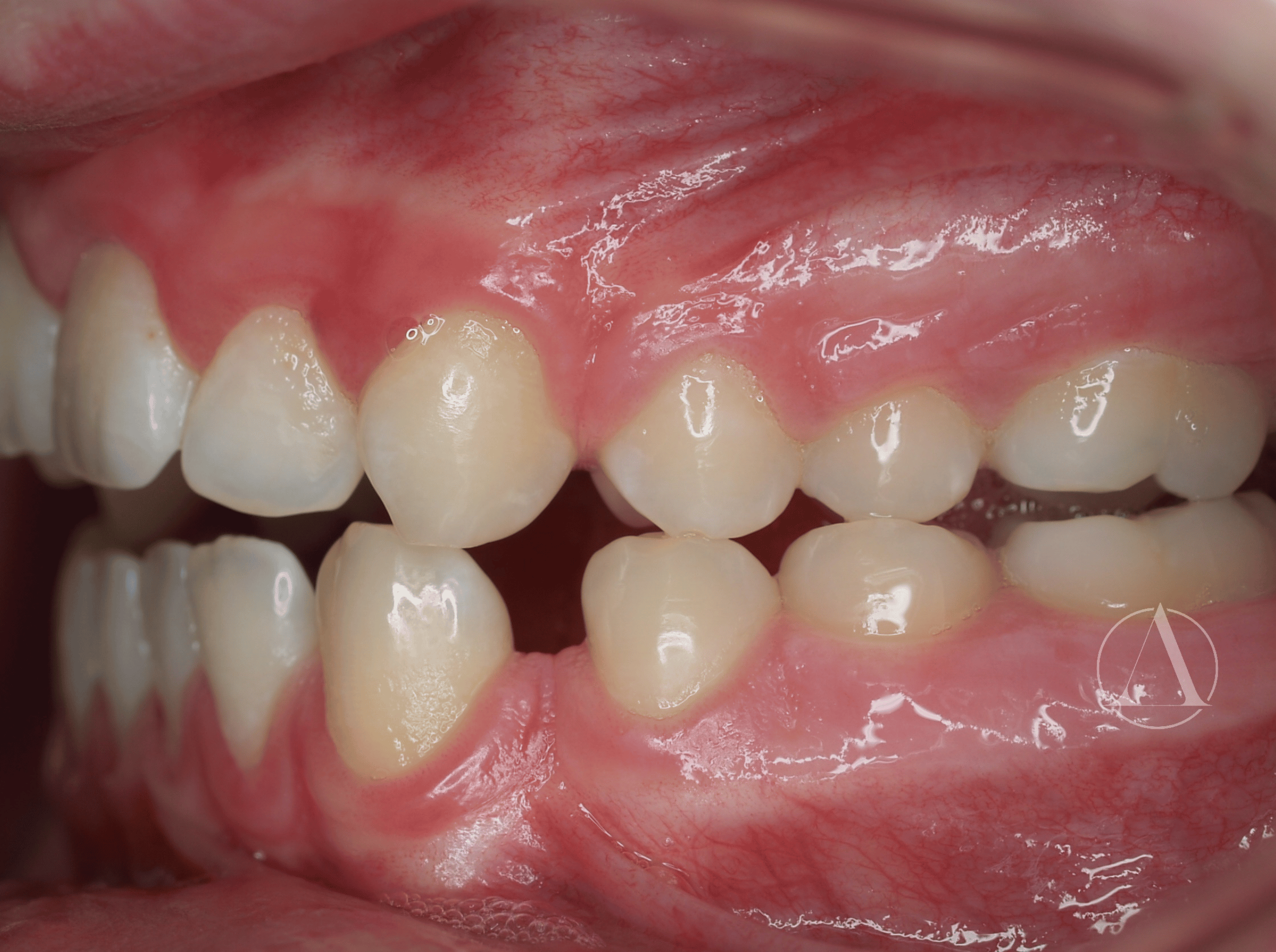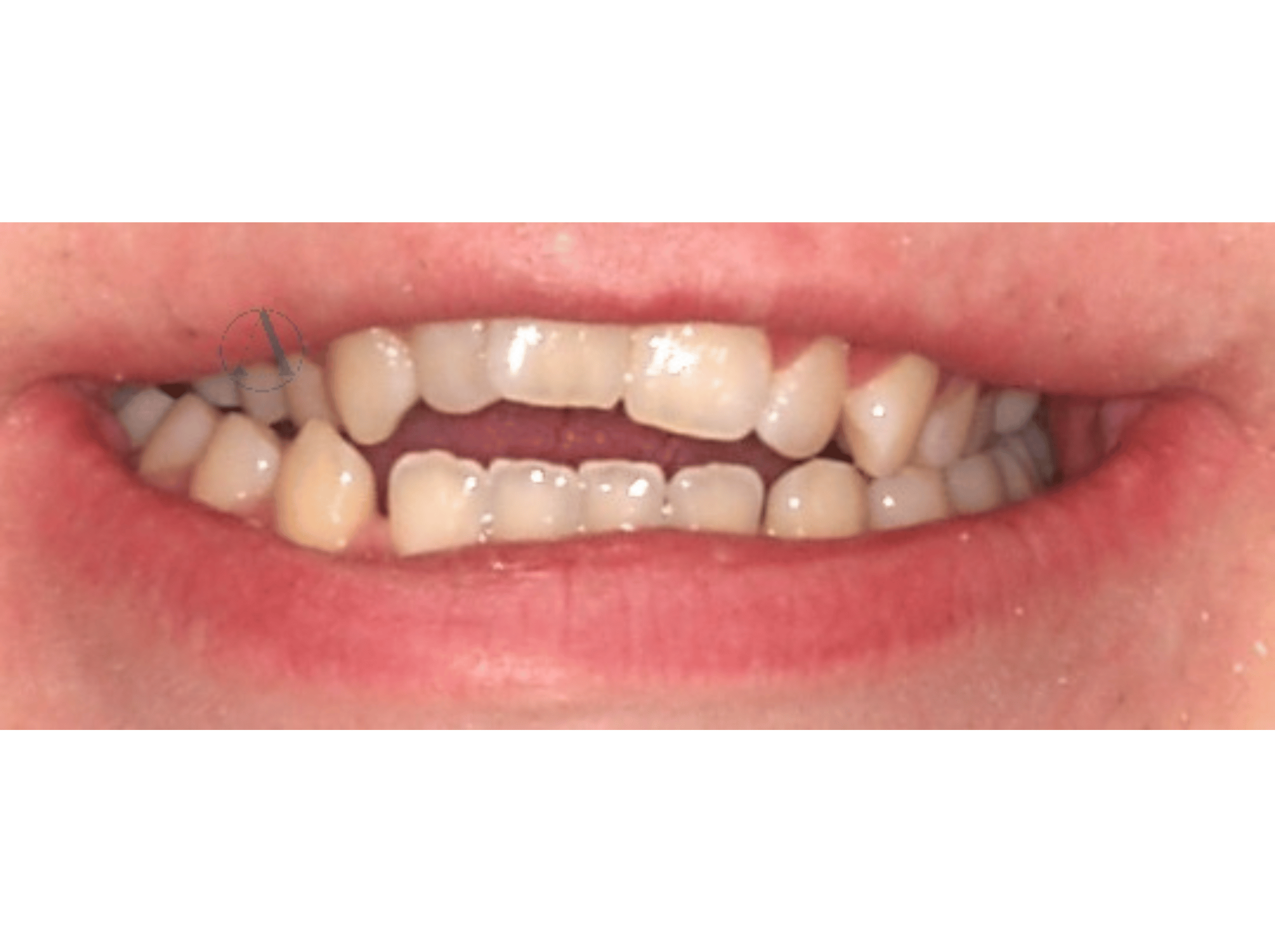 - Prolonged thumb sucking led to open bite and Crossbite.